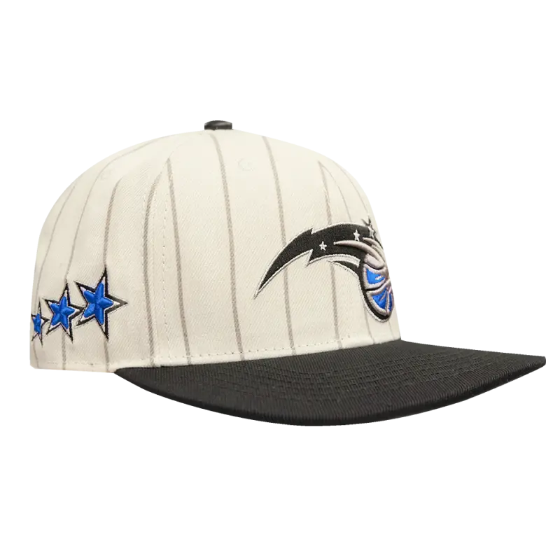 NBA ORLANDO MAGIC PINSTRIPE RETRO CLASSIC LOGO WOOL SNAPBACK HAT (EGGSHELL\/ GREY)